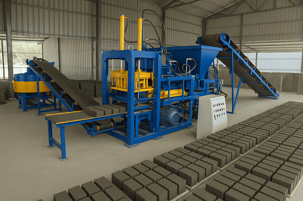 An Automatic Fly Ash Brick Plant is a machine that makes bricks from fly ash, cement, sand, and other materials. Fly ash is a waste product from coal-based power plants. Instead of letting it harm the environment, it is recycled into strong building bricks.